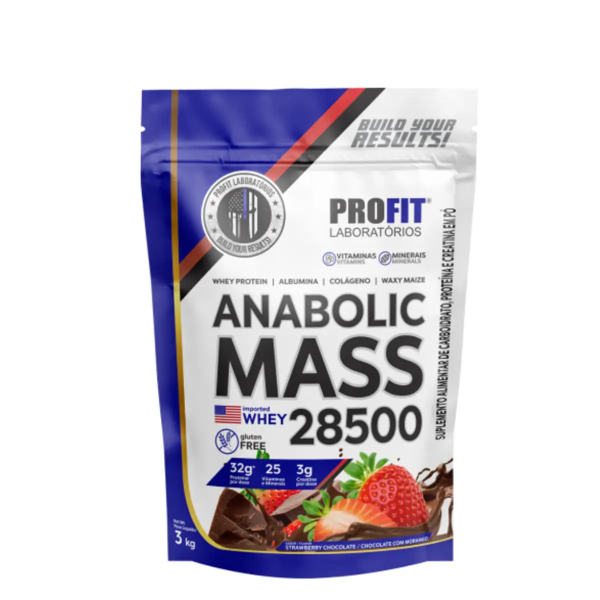 Combo Hipercalorico Profit Anabolic Mass 28500 – Baunilha – 3kg + Coqueteleira